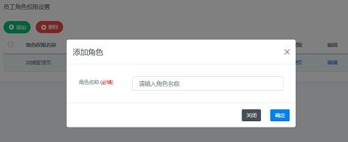 员工角色操作:添加、编辑、删除、授权。