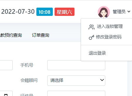 打开路径:登录分店管理系统后,系统右上角展开下拉框,