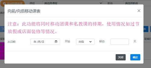 1.添加:点击“添加团课排课”按钮,会打开添加团课排课弹窗,如下图所示